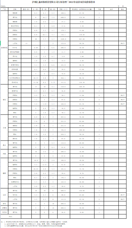 附 件 : 瀘 州 匯 鑫 環(huán) 保 科 技 有 限 公 司 污 水 處 理 廠 2022 年 清淤項(xiàng)目詢價(jià)報(bào)價(jià)表