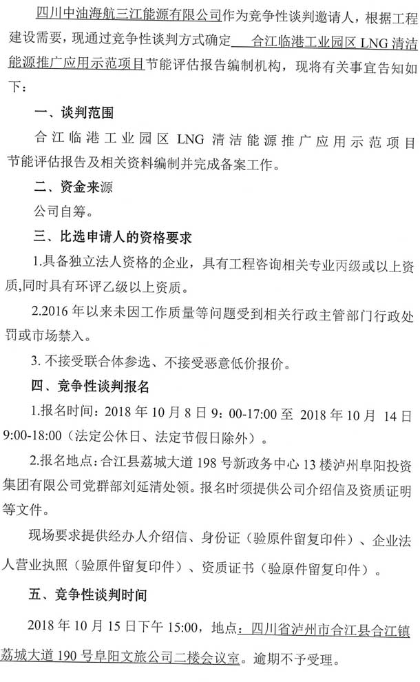 合江臨港工業(yè)園區(qū)LNG清潔能源推廣應(yīng)用示范項目節(jié)能評估報告編制單位競爭性談判公告.doc